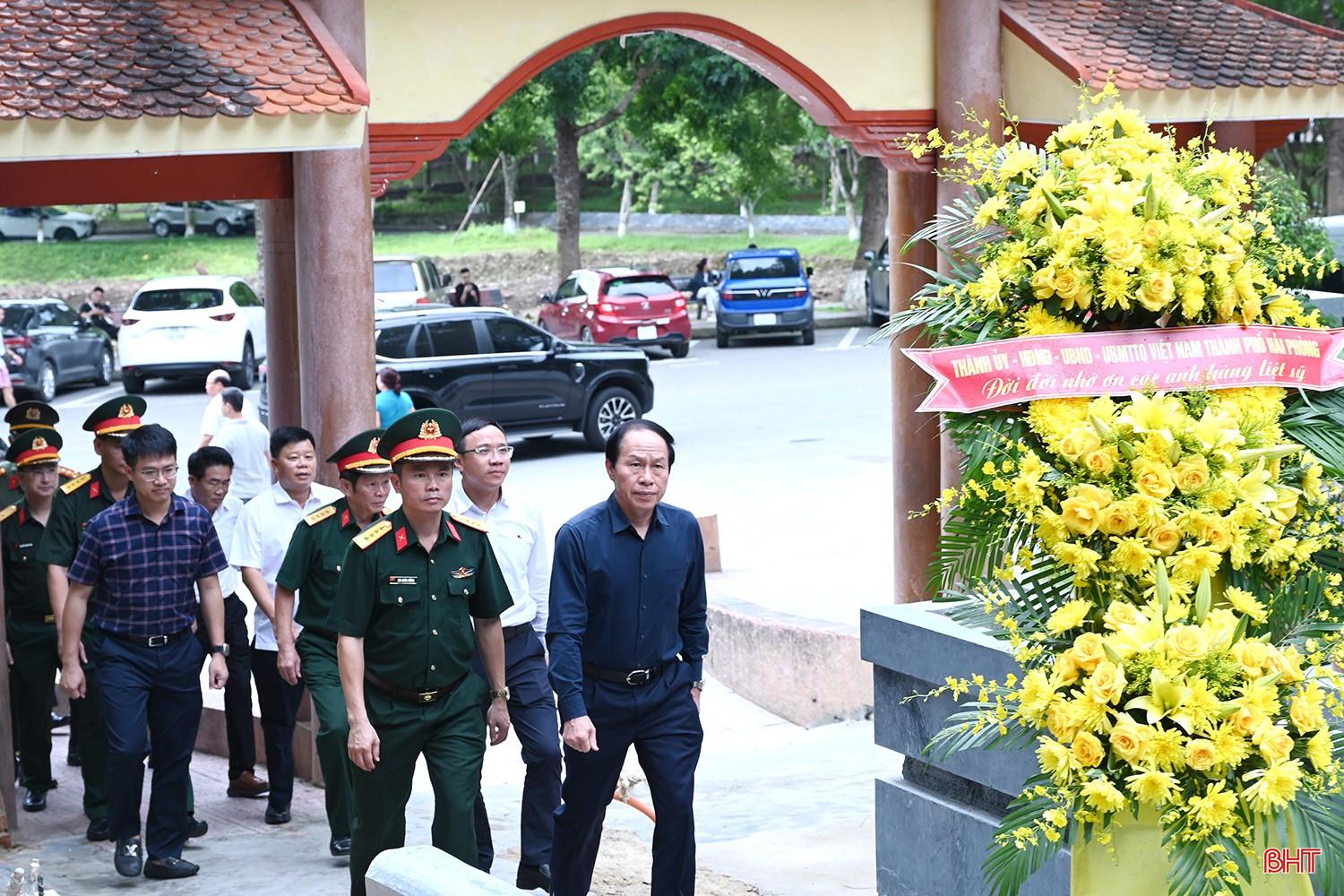 Trong hành trình tri ân tại Hà Tĩnh, đoàn công tác Thành uỷ Hải Phòng cũng đã đến dâng hương, dâng hoa tại Khu tưởng niệm các anh hùng liệt sỹ tại Cầu Nhe (xã Gia Hanh).